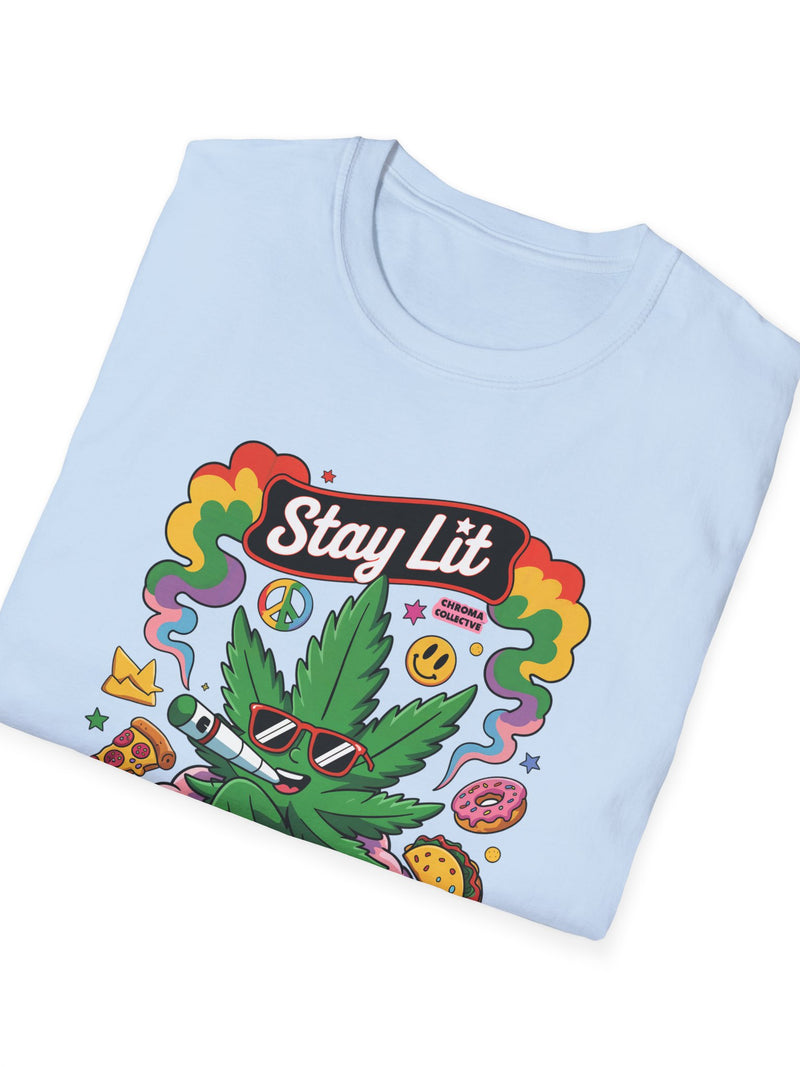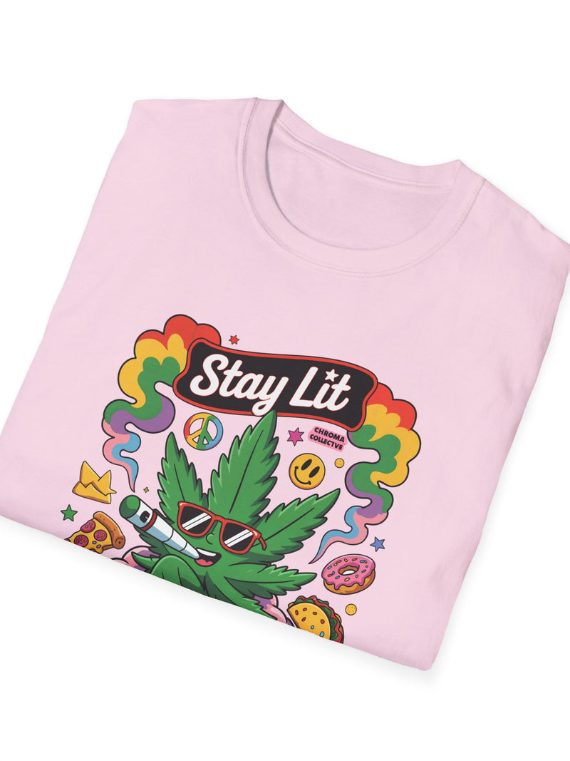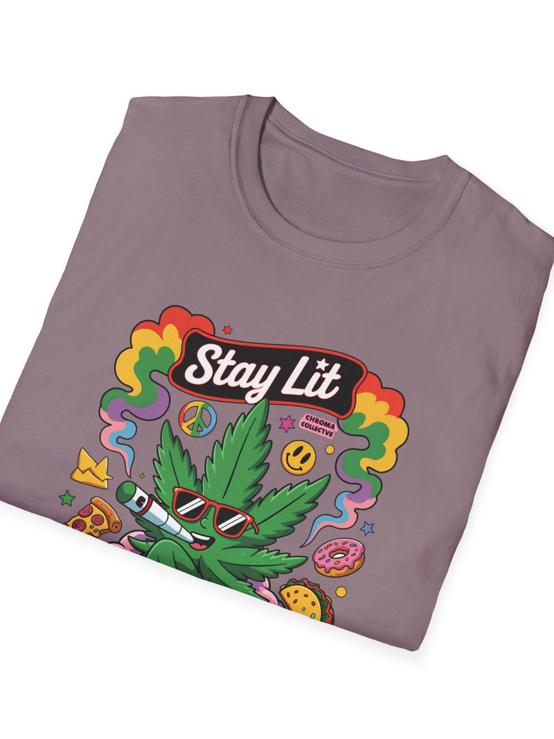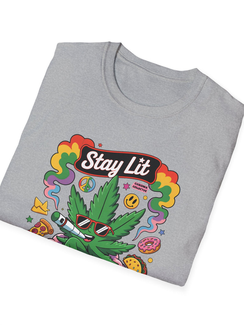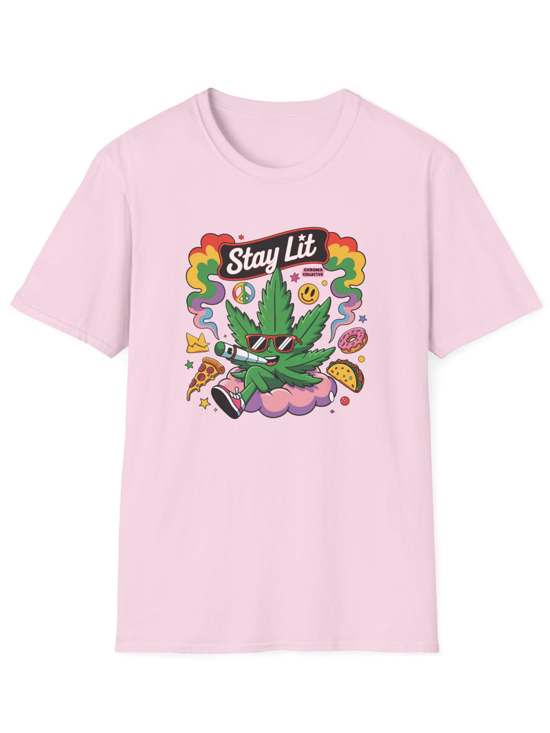 Introducing a vibrant Unisex Softstyle T-Shirt that radiates positivity and fun! The playful design, featuring a colorful illustration and the phrase "Stay Lit," invites good vibes and a relaxed atmosphere. Perfect for casual outings with friends, lazy afternoons at home, or as a conversation starter at parties. This t-shirt is an excellent addition to any wardrobe, whether for everyday wear or special gatherings. Ideal for young adults and anyone who appreciates a laid-back lifestyle, it's the perfect gift for birthdays, housewarming parties, or just to brighten someone’s day. Celebrate the spirit of friendship and positivity year-round!
