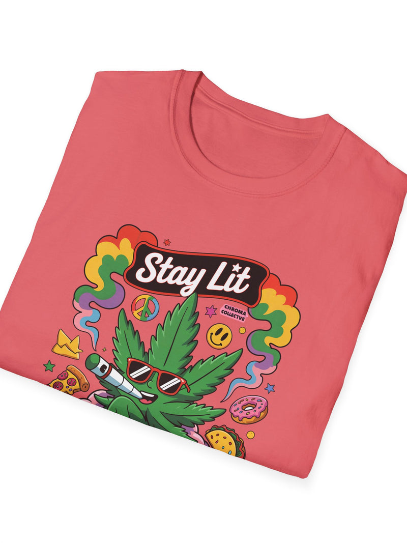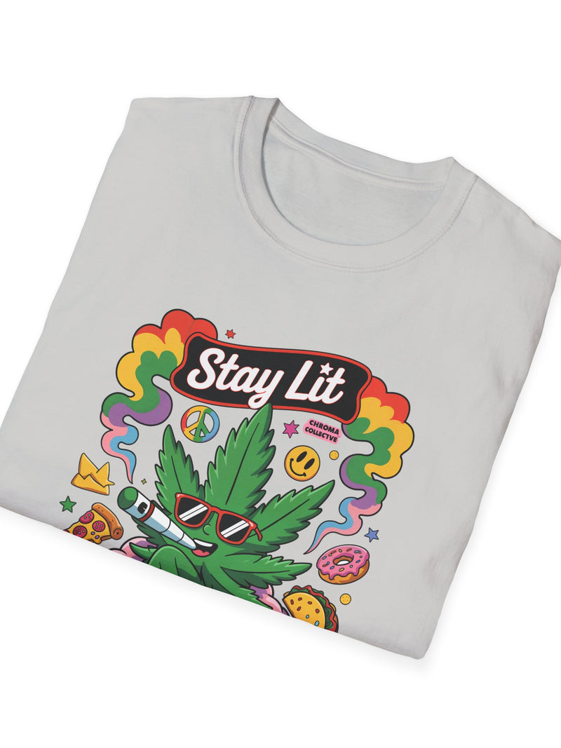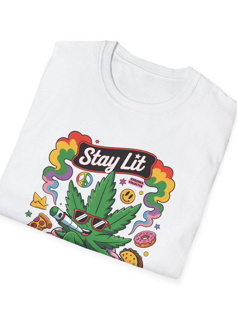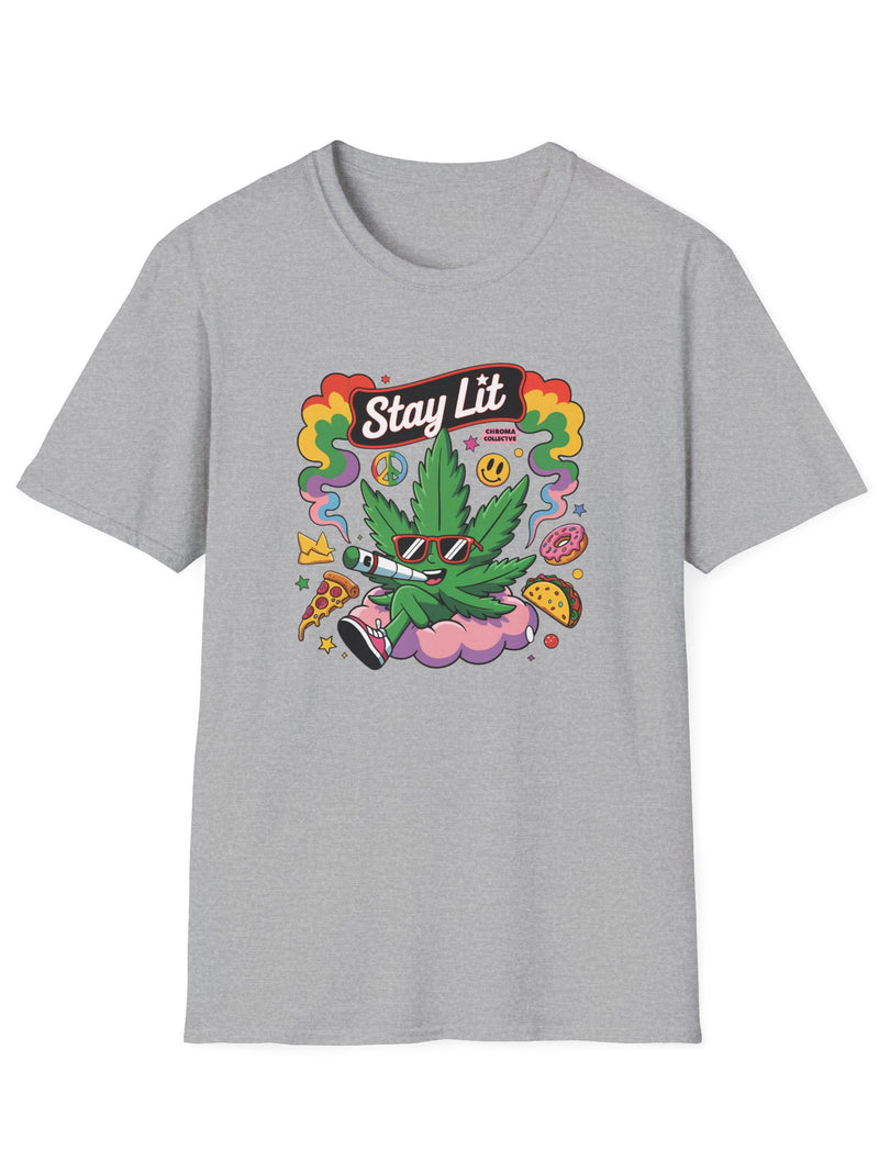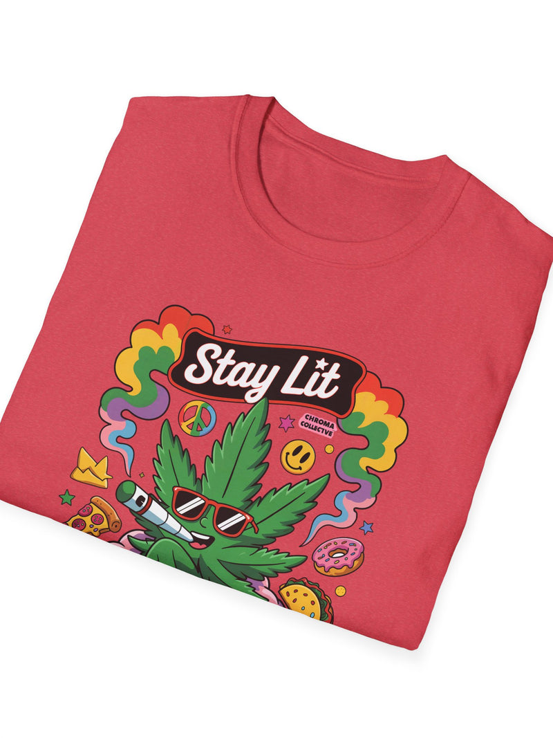 Introducing a vibrant Unisex Softstyle T-Shirt that radiates positivity and fun! The playful design, featuring a colorful illustration and the phrase "Stay Lit," invites good vibes and a relaxed atmosphere. Perfect for casual outings with friends, lazy afternoons at home, or as a conversation starter at parties. This t-shirt is an excellent addition to any wardrobe, whether for everyday wear or special gatherings. Ideal for young adults and anyone who appreciates a laid-back lifestyle, it's the perfect gift for birthdays, housewarming parties, or just to brighten someone’s day. Celebrate the spirit of friendship and positivity year-round!