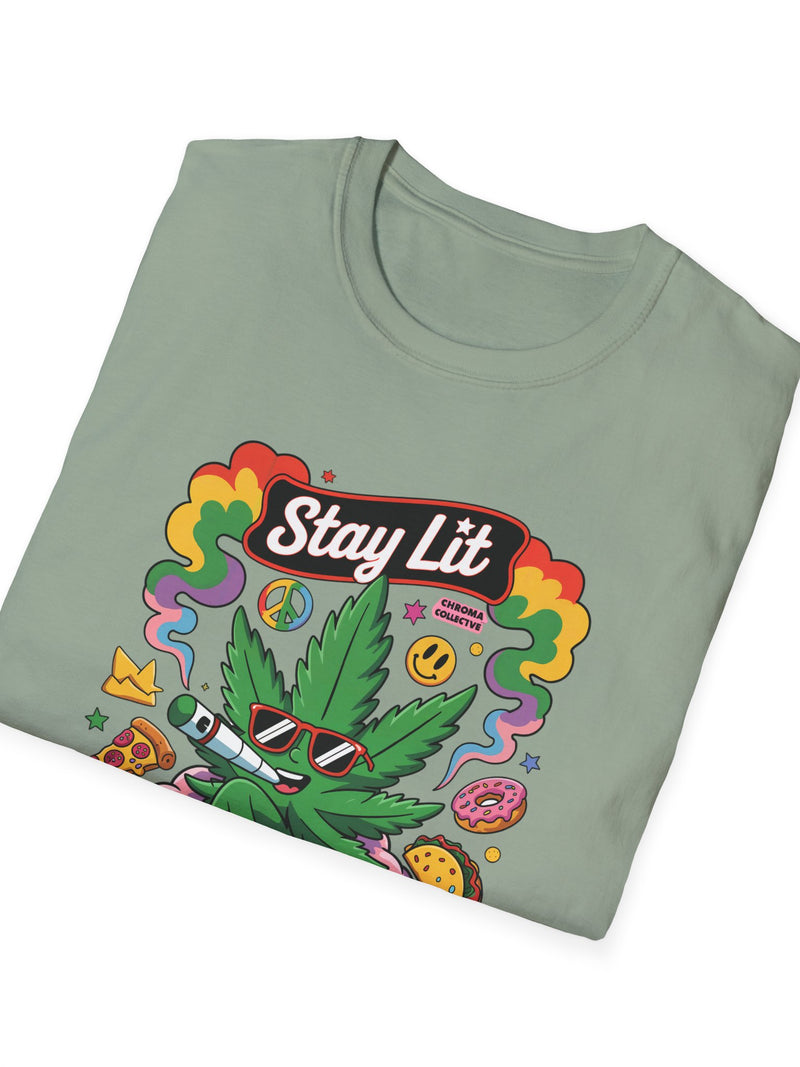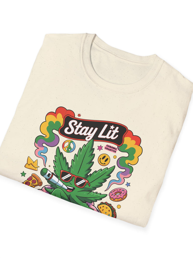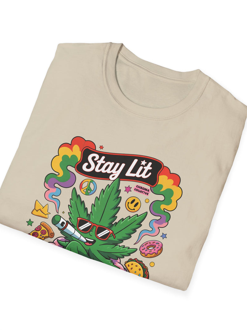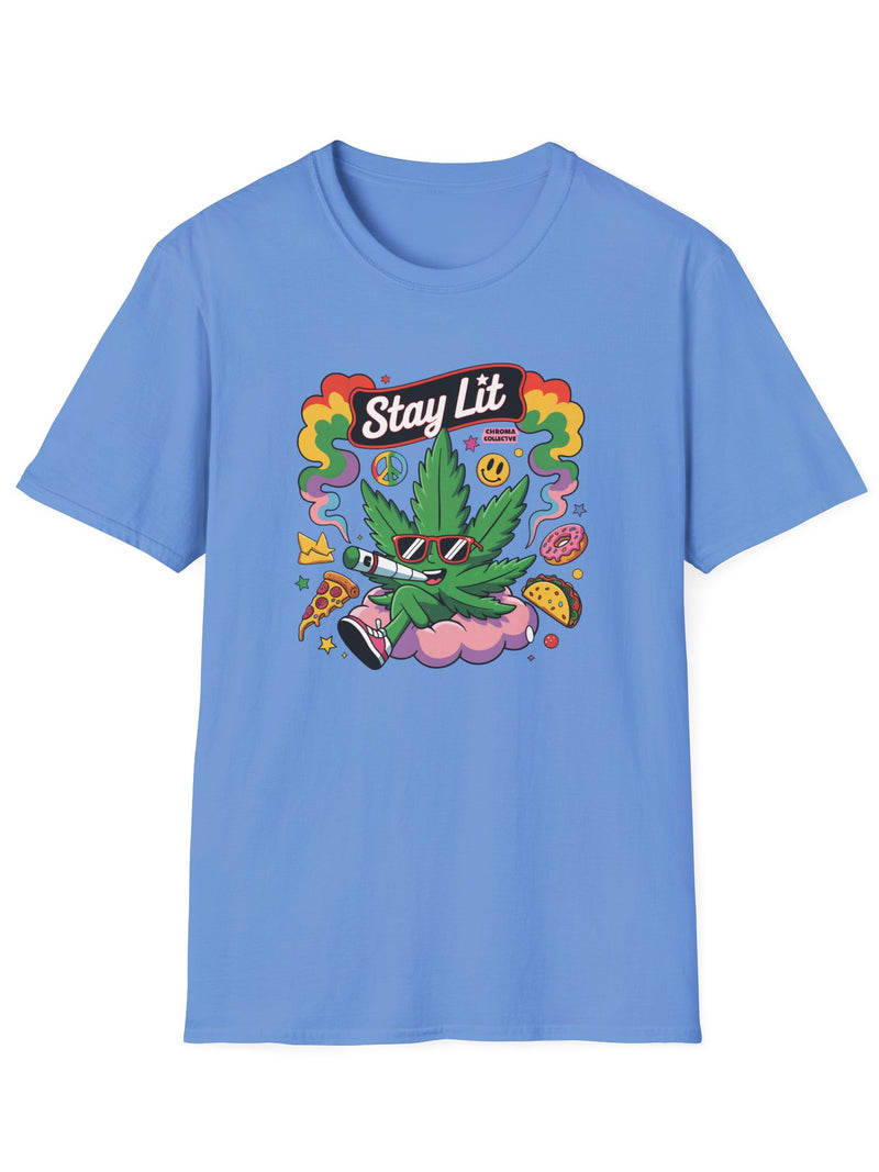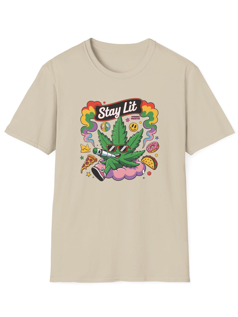 Introducing a vibrant Unisex Softstyle T-Shirt that radiates positivity and fun! The playful design, featuring a colorful illustration and the phrase "Stay Lit," invites good vibes and a relaxed atmosphere. Perfect for casual outings with friends, lazy afternoons at home, or as a conversation starter at parties. This t-shirt is an excellent addition to any wardrobe, whether for everyday wear or special gatherings. Ideal for young adults and anyone who appreciates a laid-back lifestyle, it's the perfect gift for birthdays, housewarming parties, or just to brighten someone’s day. Celebrate the spirit of friendship and positivity year-round!